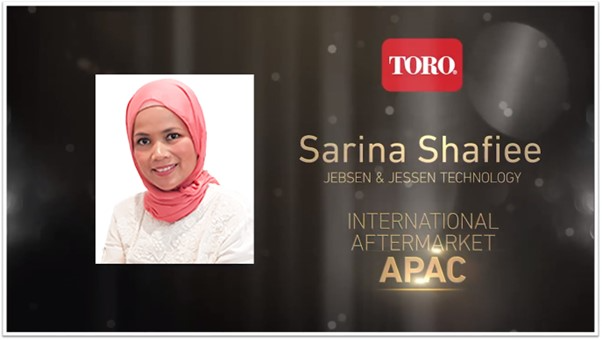 Jebsen & Jessen Technology - Turf & Irrigation (JJ T&I) and Sarina Shafiee, JJ T&I Regional After-Sales Manager, received awards in the ‘Top Performer’ and ‘International Aftermarket APAC’ categories